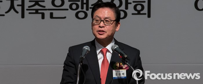 (서울=포커스뉴스) 5일 오후 서울 중구 롯데호텔에서 열린 '2016년 범금융 신년인사회'에서 정우택 국회 정무위원장이 격려사를 하고 있다.