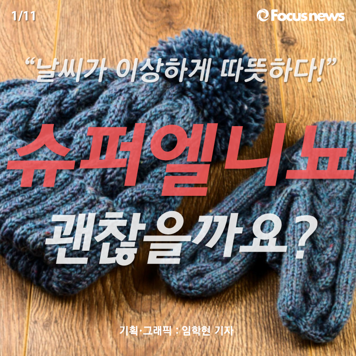 (서울=포커스뉴스) 요즘 겨울이 겨울 같지가 않습니다. 예로부터 우리나라의 겨울 날씨를 가리키는 '삼한사온(三寒四溫)'이라는 말이 무색해질 정도로 따뜻한 날이 잦은데요. 사실 이런 현상은 비단 우리나라에만 국한된 것이 아닙니다. 2015년부터 어딘가 심상찮은 세계의 겨울, 그 원인이 '슈퍼엘니뇨'라고 하는데요. 그 자세한 내용을 카드뉴스로 알아보시죠.