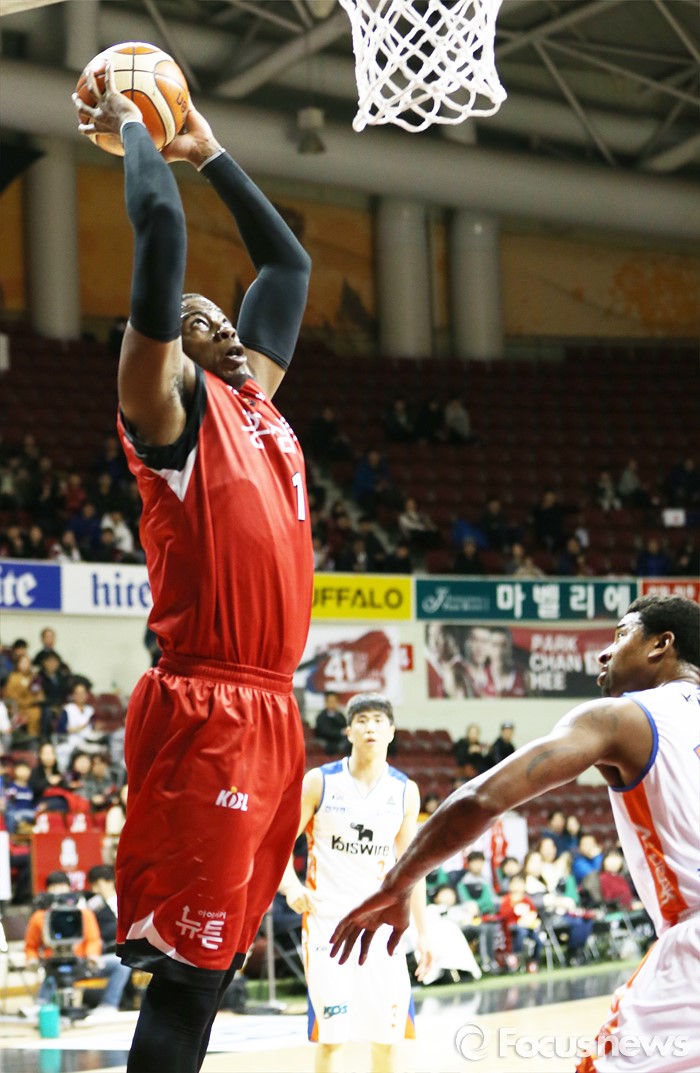 (안양=포커스뉴스) 5일 안양실내체육관에서 열린 2015-2016 프로농구 KGC-전자랜드 경기에서 KGC 찰스 로드가 투핸드 덩크슛을 시도하고 있다.