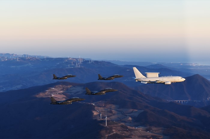 | △ 새해맞이 편대비행 하는 피스아이와 F-15K 편대 |