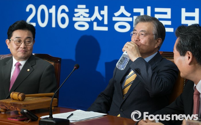 (서울=포커스뉴스) 문재인 더불어민주당 대표가 6일 오전 서울 여의도 국회에서 열린 최고위원회의에 참석해 물을 마시고 있다.