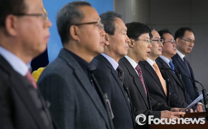 (서울=포커스뉴스) 6일 오전 서울 여의도 국회 정론관에서 한국기계산업진흥회 등 15개 협·단체와 관련 9개 조합 관계자들이 경제활성화법 등 입법 촉구 공동 건의문을 발표하고 있다