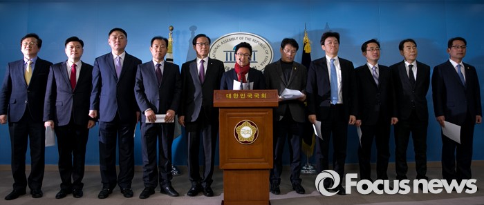 (서울=포커스뉴스) 6일 오전 서울 여의도 국회 정론관에서 정진욱 새정치경제아카데미 원장 등 당원들이 더불어민주당 탈당 및 안철수 신당 합류 기자회견을 하고 있다.