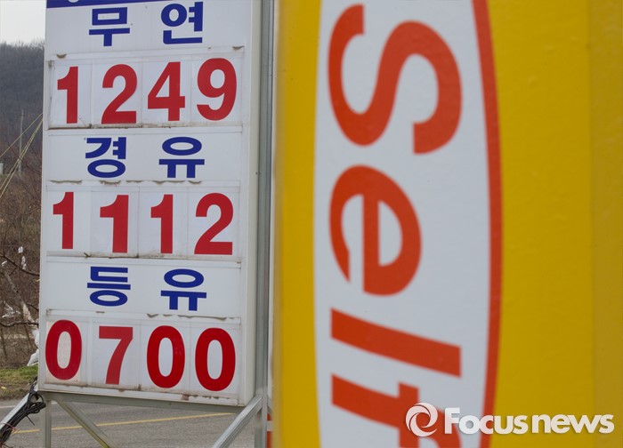 (음성=포커스뉴스) 국제유가 하락으로 휘발윳값이 7년 만에 최저가를 보인 가운데 6일 오전 11시 기준 충북 음성군 감곡면에 위치한 주유소에서 전국 최저가인 리터당 휘발유는 1249원, 경유는 1112원에 판매되고 있다.