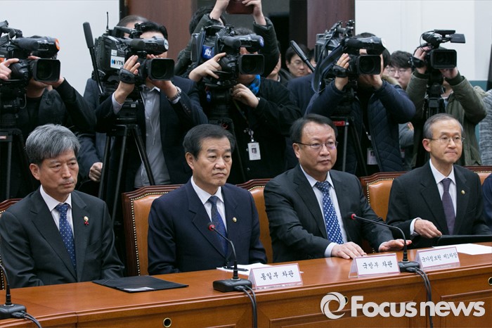 (서울=포커스뉴스) 6일 오후 서울 여의도 국회 새누리당 대표최고위원실에서 열린 북한 핵실험 관련 긴급대책회의에 정부 외교안보 관계부처 차관들이 참석해 있다. 왼쪽부터 황부기 통일부 차관, 황인무 국방부 차관, 한기범 국정원 1차장, 임성남 외교부 1차관.