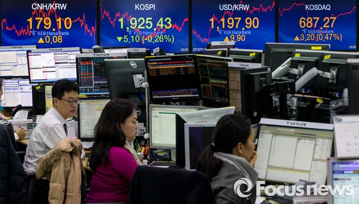 (서울=포커스뉴스) 코스피 지수가 전거래일 보다 5.10포인트(0.26%) 하락한 1,925.43에 거래를 마치며, 북한의 수소탄 실험에도 1920선을 지킨 6일 오후 서울 중구 KEB하나은행 본점 딜링룸에서 딜러들이 업무를 보고 있다. 이날 원달러 환율은 전거래일 보다 9.9원 오른 1197.9원에 마감하며, 지난해 9월 1200.9원 이후 4개월 만에 최고치를 기록 했다.