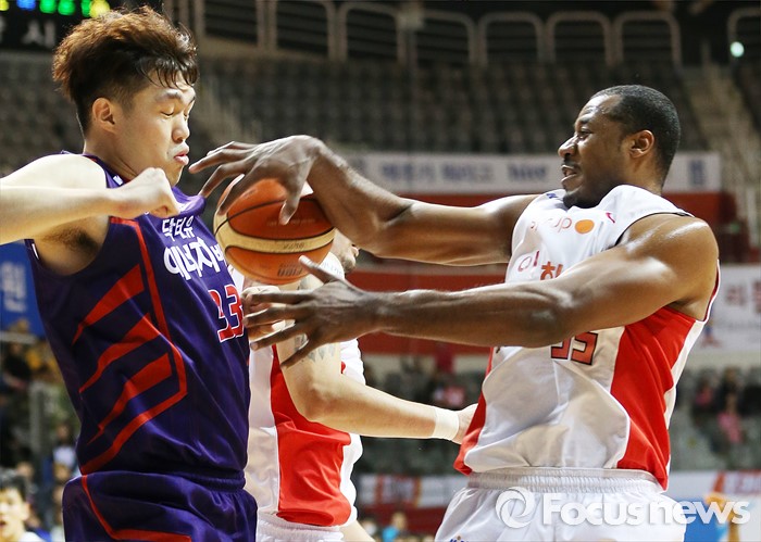 (고양=포커스뉴스) 6일 고양체육관에서 열린 2015-2016 프로농구 오리온-SK 경기에서 오리온 이승현과 SK 사이먼이 리바운드볼을 다투고 있다.