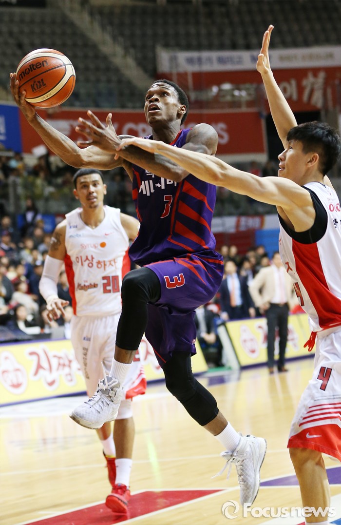 (고양=포커스뉴스) 6일 고양체육관에서 열린 2015-2016 프로농구 오리온-SK 경기에서 오리온 조 잭슨이 SK 박형철의 마크를 피해 레이업슛을 시도하고 있다.