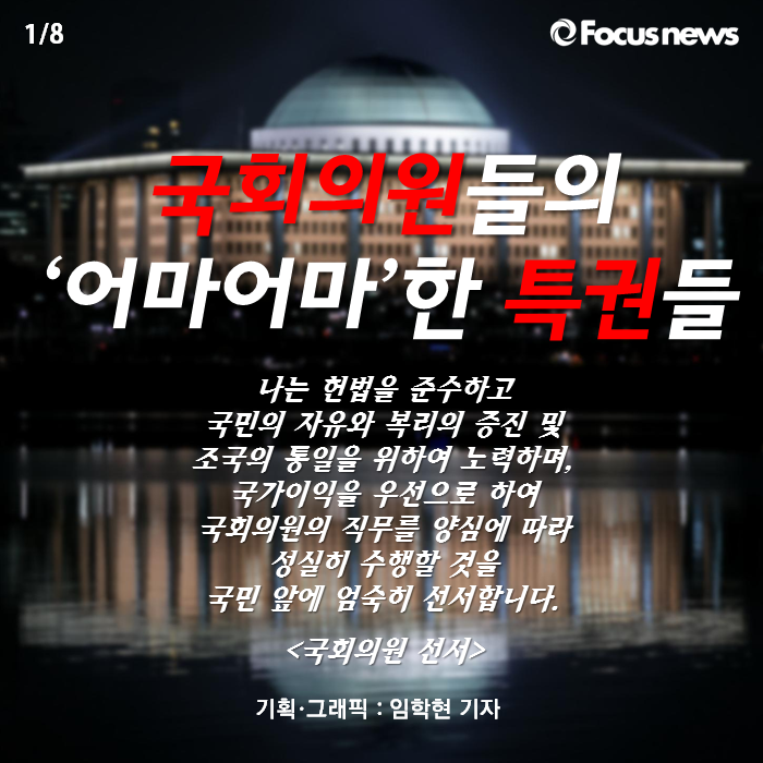 (서울=포커스뉴스) 올해는 제20대 총선이 있는 해입니다. 말도 많고 탈도 많았던 제19대 의회가 역사 속으로 퇴장하고 새로운 4년을 열 국회의원을 뽑는 해인데요. 혹시 '국회의원 되면 뭐가 좋을까?'라는 생각해 본 적 있지 않으세요?