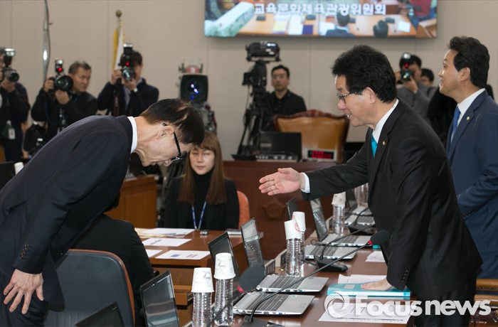 (서울=포커스뉴스) 이준식 사회부총리 겸 교육부 장관 후보자가 7일 오전 서울 여의도 국회에서 열린 인사청문회에 참석해 야당 의원들과 인사하고 있다.