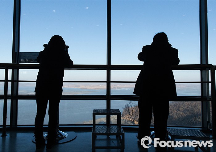 (파주=포커스뉴스) 7일 오전 경기도 파주 오두산 통일전망대에서 관광객들이 망원경을 통해 황해북도 개풍군 일대를 관측하고 있다.