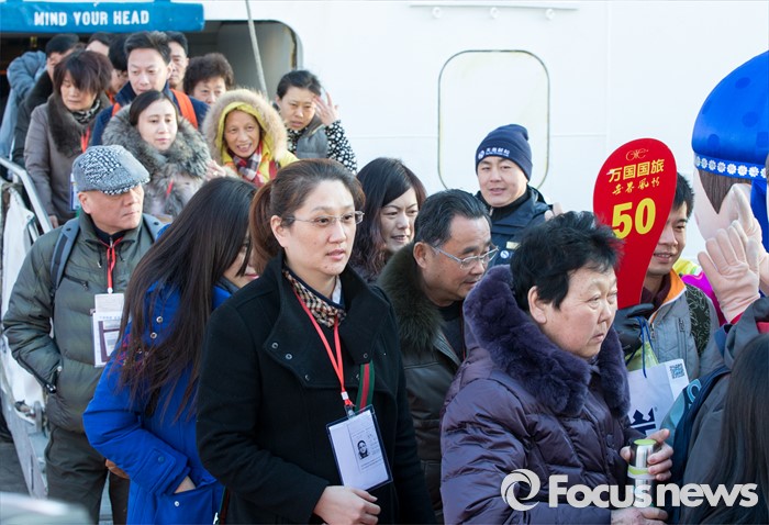 (동해=포커스뉴스) 7일 오전 강원 동해항 중앙부두에 입항한 중국 천해크루즈사의 스카이씨 골든 에라호에서 중국인 관광객들이 하선하고 있다. 이날 강원도를 찾은 관광객 1천800여 명은 정선 강원랜드 눈썰매장, 평창 용평·알펜시아스키장, 속초 중앙시장, 설악산 등을 둘러볼 예정이다.