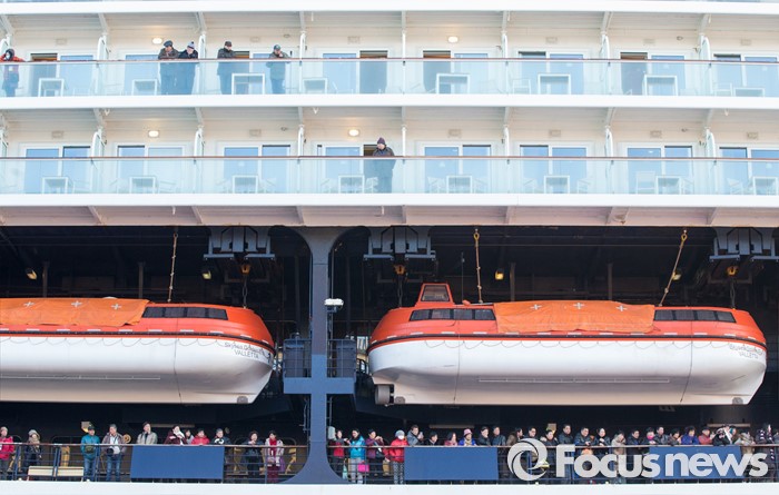 (동해=포커스뉴스) 7일 오전 강원 동해항 중앙부두에 입항한 중국 천해크루즈사의 스카이씨 골든 에라호에서 중국인 관광객들이 하선을 기다리고 있다. 이날 강원도를 찾은 관광객 1천800여 명은 정선 강원랜드 눈썰매장, 평창 용평·알펜시아스키장, 속초 중앙시장, 설악산 등을 둘러볼 예정이다.