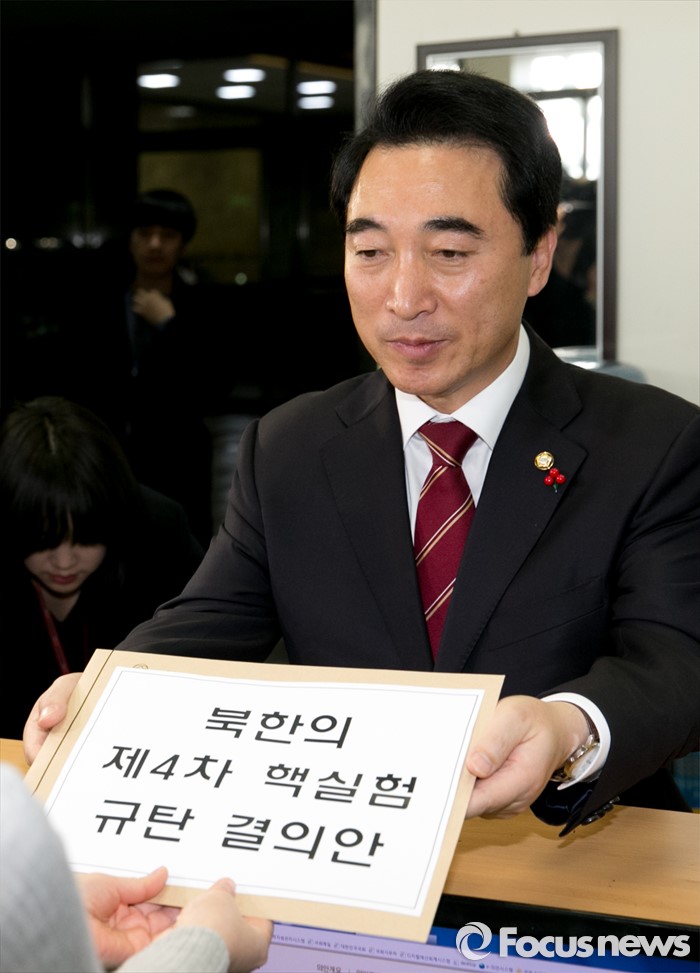 | △ 북한 핵실험 규탄 결의안 제출하는 박수현 |