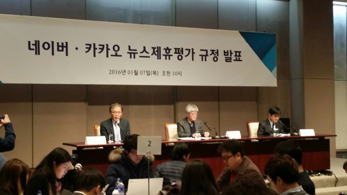 뉴스제휴평가위원회(이하 뉴스제휴평가위)가 7일 서울 중구 프레스센터에서 가진 기자간담회를 갖고 ‘네이버-카카오 뉴스 제휴 및 제재 심사 규정’을 발표했다. 규정은 3월1일부터 시행된다.
