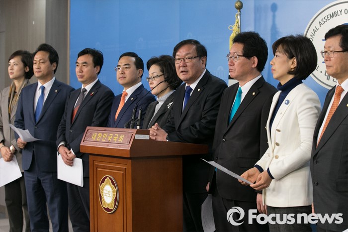 (서울=포커스뉴스) 김태년(오른쪽 네번째) 더불어민주당 의원을 비롯한 교육문화체육관광위원회 야당 위원들이 7일 오전 서울 여의도 국회 정론관에서 보육대란 현실화와 관련해, 정부·여당과 긴급 사회적 협의 기구를 구성할 것을 제안하는 기자회견을 하고 있다.