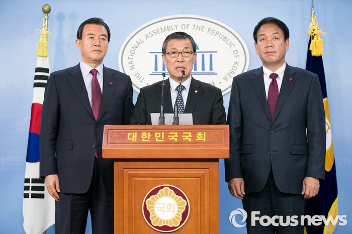 (서울=포커스뉴스) 황진하 새누리당 공천제도특별위원장이 7일 오전 서울 여의도 국회 정론관에서 특위 회의 결과에 대한 브리핑을 하고 있다. 왼쪽부터 홍문표 의원, 황 위원장, 박종희 제2사무부총장.