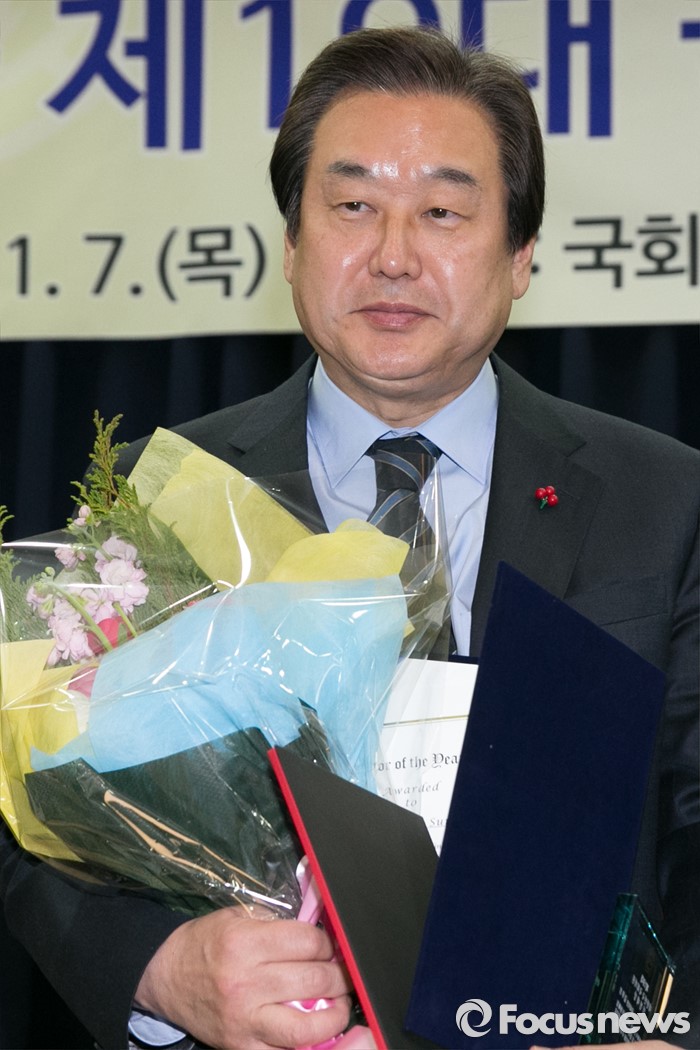 (서울=포커스뉴스) 김무성 새누리당 대표가 7일 오전 서울 여의도 국회 의원회관에서 열린 대한민국 제19대 국회의원 의정대상 시상식에서 특별공로상을 받고 있다.