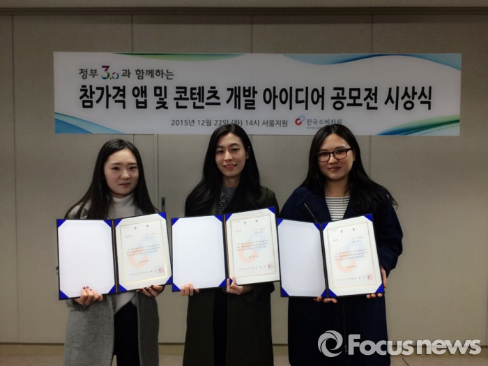 (서울=포커스뉴스) 건국대학교는 상경대학 소비자정보학과 박지영, 이수윤, 위수연 학생이 한국소비자보호원이 ‘참가격 앱 및 콘텐츠 개발 아이디어 공모전’에서 우수상을 수상했다고 7일 밝혔다.