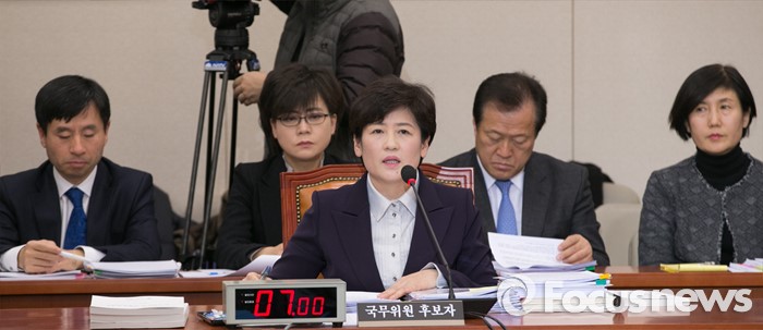 (서울=포커스뉴스) 강은희 여성가족부 장관 후보자가 7일 오전 서울 여의도 국회에서 열린 인사청문회에 참석해 의원들의 질의에 답하고 있다.