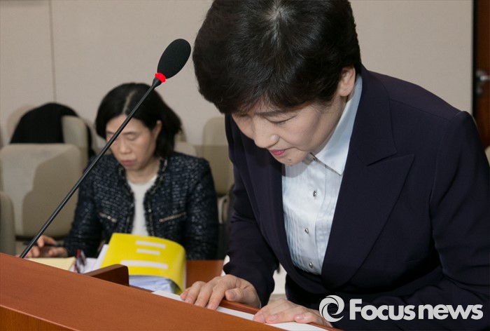 | △ 고개 숙인 강은희 후보자 |