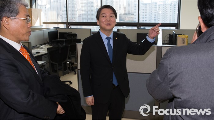 (서울=포커스뉴스) 야권 신당을 추진 중인 안철수, 무소속 의원이 7일 오후 서울 마포구 신당 당사에서 공사중인 시설을 살펴보고 있다.