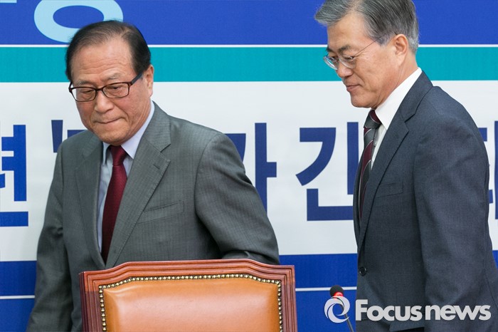 (서울=포커스뉴스) 문재인(오른쪽) 더불어민주당 대표와 정세현 전 통일부 장관이 7일 오후 서울 여의도 국회에서 열린 '북한 핵실험 관련 전문가 긴급 좌담회'에 참석하고 있다.