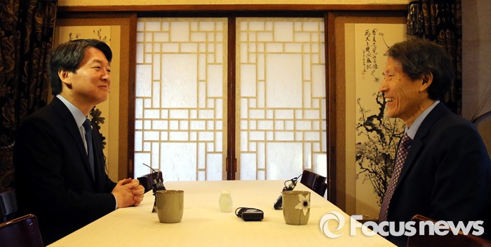 (서울=포커스뉴스) 더불어민주당 탈당 후 신당 창당을 준비하고 있는 안철수 무소속 의원이 7일 오후 서울 종로구 경운동 민다가헌에서 한상진 교수와 회동을 하고 있다.