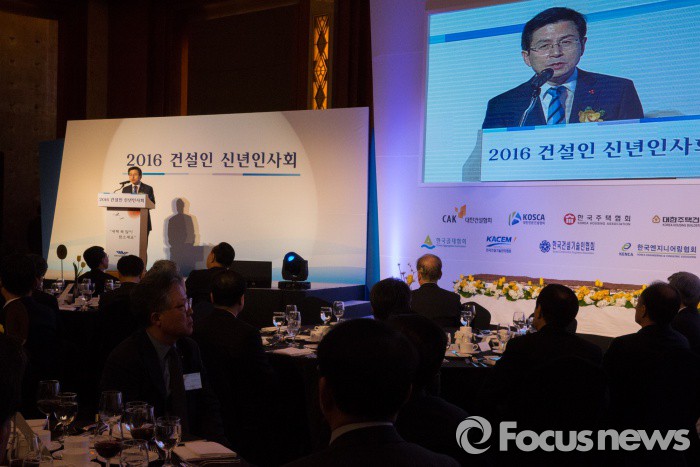 (서울=포커스뉴스) 황교안 국무총리가 7일 오후 서울 중구 롯데호텔에서 열린 2016 건설인 신년인사회에 참석해 신년사를 하고 있다.