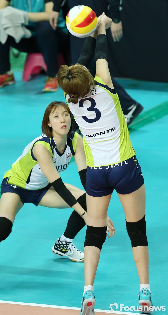(서울=포커스뉴스) 7일 장충체육관에서 열린 '2015-2016NH농협 V-리그' 여자부 GS칼텍스-현대건설 경기에서 현대건설 염혜선이 블로킹에 맞고 튄공을 살리고 있다.