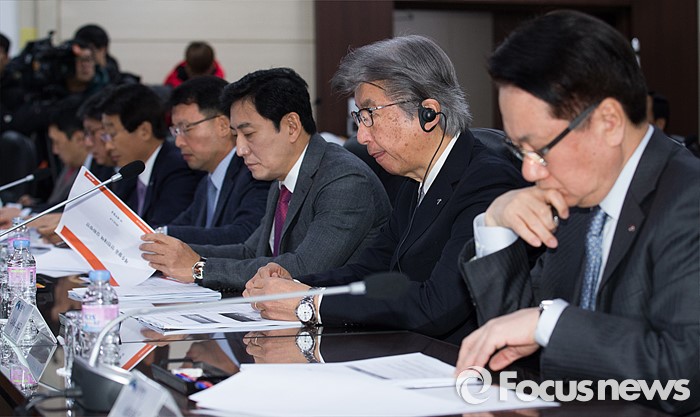 (서울=포커스뉴스) 8일 오전 서울 강서구 한국공항공사 대회의실에서 열린 저비용항공사(LCC) 긴급 안전점검회의에 참석한 국적항공사 사장들이 회의자료를 검토하고 있다. 오른쪽부터 지창훈 대한항공 사장, 아시아나 아키요시 안전보안실장, 제주항공 최규남 사장, 진에어 마원 사장.