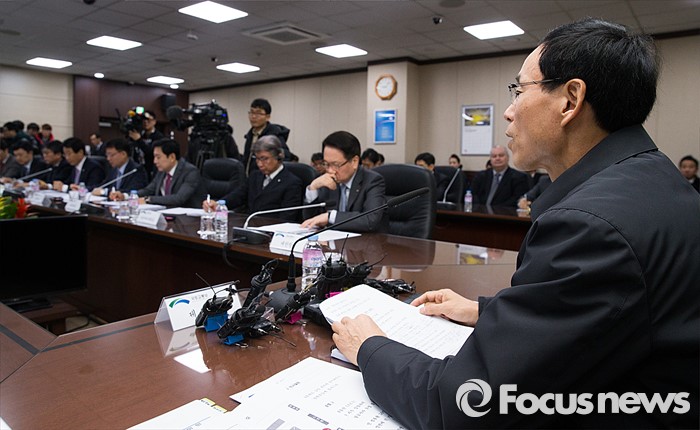 (서울=포커스뉴스) 최정호 국토교통부 2차관이 8일 오전 서울 강서구 한국공항공사 대회의실에서 열린 저비용항공사(LCC) 긴급 안전점검회의에 참석해 모두발언 하고 있다.