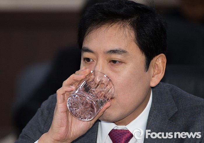 (서울=포커스뉴스) 최규남 제주항공 사장이 8일 오전 서울 강서구 한국공항공사 대회의실에서 열린 저비용항공사(LCC) 긴급 안전점검회의에 참석해 물을 마시고 있다.
