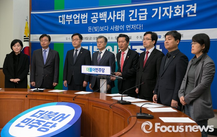 (서울=포커스뉴스) 정청래 더불어민주당 가계부채특위 위원장이 8일 오전 서울 여의도 국회에서 대부업법 공백상태 긴급대응 기자회견을 하고 있다.
