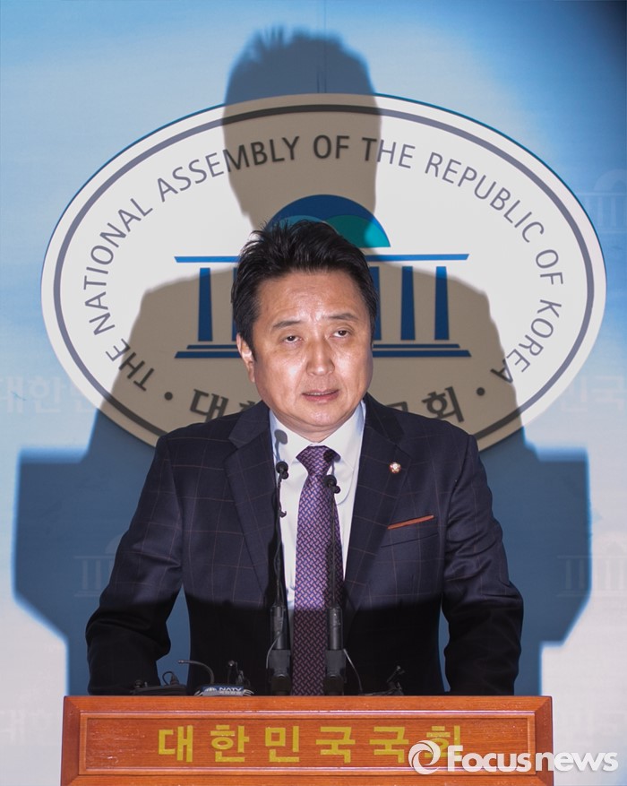 (서울=포커스뉴스) 김영환 더불어민주당 의원이 8일 오전 서울 여의도 국회 정론관에서 탈당 기자회견을 하고 있다.