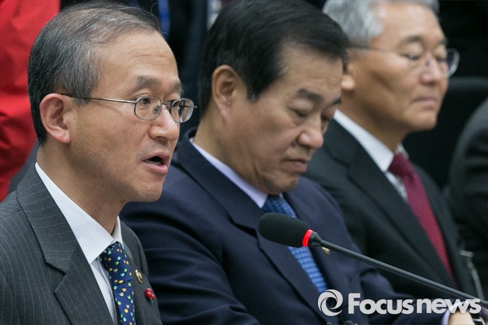 (서울=포커스뉴스) 임성남(왼쪽) 외교부 1차관이 8일 오전 서울 여의도 국회 새누리당 정책위원회에서 열린 북핵 관련 전문가 간담회에 참석해 발언하고 있다.