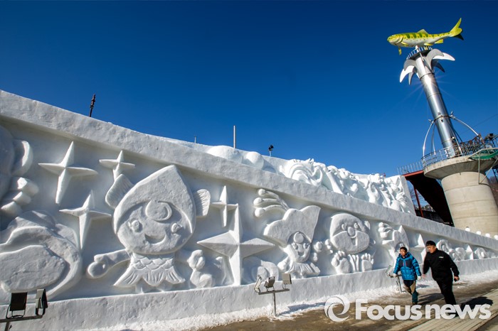 (화천=포커스뉴스) 산천어축제를 하루 앞둔 8일 오후 강원도 화천군 산천어축제 행사장인 화천천에 얼음조각 작품이 전시되고 있다. 산천어축제는 오는 9일부터 31일까지 강원도 화천군 화천천 및 3개읍면 일원에서 진행될 예정이다.