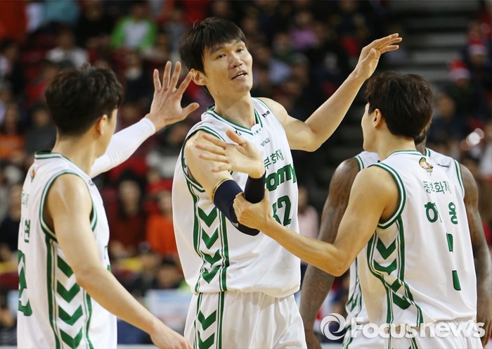 김주성은 4라운드 성적은 에밋보다 좋지 않다. 하지만 성적보다 남자프로농구 역대 최초 1000블록 대기록을 세운 데 지지를 받았다. 김주성은 4라운드 9경기에서 경기당 평균 26분7초를 소화하며 10.4득점, 5.6리바운드, 2.8어시스트, 0.6스틸, 0.9블록을 기록했다. 4라운드 블록슛 8개를 몰아쳐 역대 최초 1000블록 위업을 세웠다. 김주성의 활약에 동부는 4라운드 7승2패로 상승세를 탔다. 에밋은 4라운드에서 30.4득점 7리바운드 3.4어시스트 1.1스틸을 기록했다.(인천=포커스뉴스) 24일 인천 삼산체육관에서 열린 2015-2016 프로농구 전자랜드-동부 경기에서 동부 김주성이 경기 막판에 전자랜드의 추격의지를 꺾는 3점슛을 성공시키고 동료들과 함께 기뻐하고 있다. 2015.12.24 우정식 기자