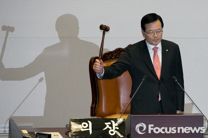 (서울=포커스뉴스) 정의화 의장이 8일 오후 서울 여의도 국회 본회의장에서 19대 국회 임시국회 본회의 개의를 선언하고 있다.