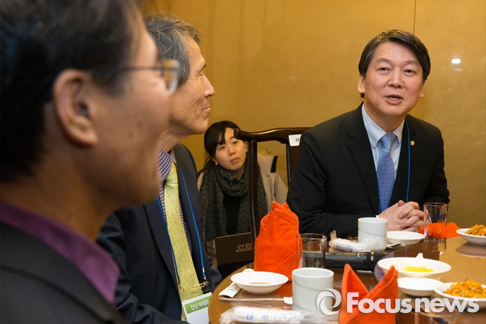 (서울=포커스뉴스) 8일 오후 서울 마포구 한 중식당에서 안철수(오른쪽) 무소속 의원이 '2012년 진심캠프' 원년 멤버들과 만찬자리를 갖고 있다.