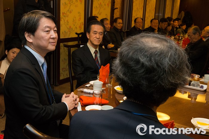 (서울=포커스뉴스) 8일 오후 서울 마포구 한 중식당에서 안철수(가운데) 무소속 의원이 '2012년 진심캠프' 원년 멤버들과 만찬자리를 갖고 있다.