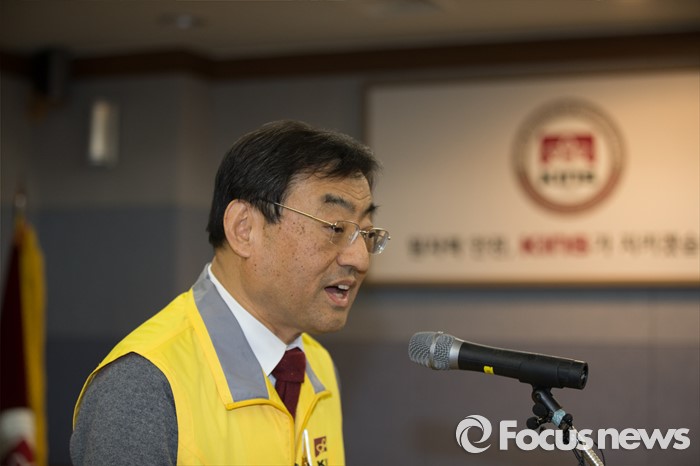 (대전=포커스뉴스) 8일 저녁 대전 유성구 한국원자력안전기술원 중회의실에서 김무환 한국원자력안전기술원장이 북한 핵실험 이후 반사성핵종 탐지·분석 결과 브리핑을 하고 있다.
