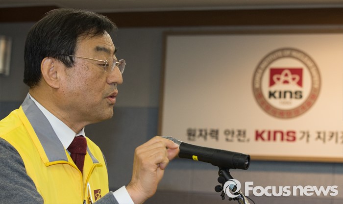 (대전=포커스뉴스) 8일 저녁 대전 유성구 한국원자력안전기술원 중회의실에서 김무환 한국원자력안전기술원장이 북한 핵실험 이후 반사성핵종 탐지·분석 결과 브리핑을 하고 있다.