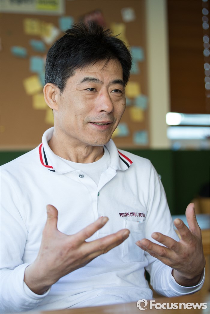 (서울=포커스뉴스)8일 오전 서울 성북구 '영철버거' 가게에서 이영철 사장이 인터뷰를 하고 있다. 고려대 앞 명물로 꼽히는 '영철버거'가 최근 경영난으로 문을 닫았다가, 고려대를 다녔던 학생들이 영철버거와의 추억을 잊지 못해 십시일반 도와 가게를 옮겨 재오픈 했다.