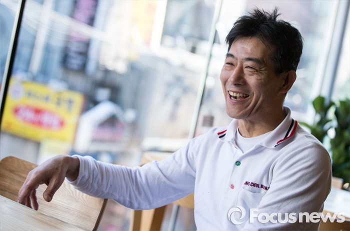 (서울=포커스뉴스)8일 오전 서울 성북구 '영철버거' 가게에서 이영철 사장이 인터뷰를 하고 있다. 고려대 앞 명물로 꼽히는 '영철버거'가 최근 경영난으로 문을 닫았다가, 고려대를 다녔던 학생들이 영철버거와의 추억을 잊지 못해 십시일반 도와 가게를 옮겨 재오픈 했다.