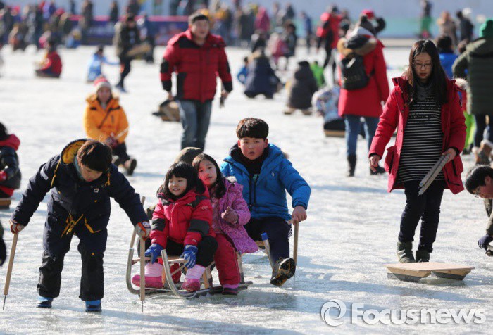| △ 화천산천어축제, 얼음썰매에 푹 빠진 어린이들 |