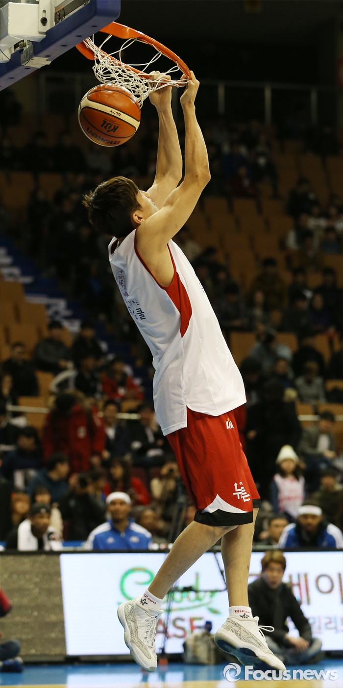(서울=포커스뉴스) 10일 서울 잠실실내체육관에서 열린 2015-2016 프로농구 올스타전 덩크슛 콘테스트 예선에서 문성곤이 백 덩크슛을 성공시키고 있다.