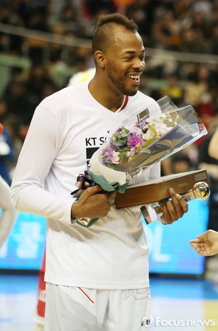 (서울=포커스뉴스) 10일 서울 잠실실내체육관에서 열린 2015-2016 프로농구 올스타전 덩크 컨테스트에서 우승한 블레이클리가 상을 받으며 밝은 표정을 짓고 있다.