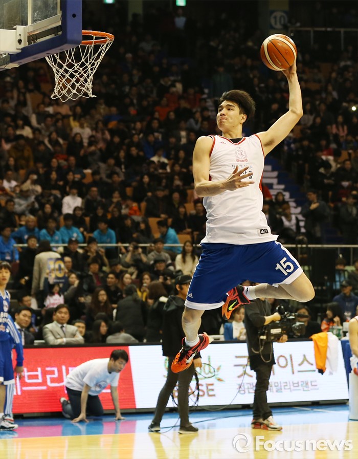 (서울=포커스뉴스) 10일 서울 잠실실내체육관에서 열린 2015-2016 프로농구 올스타전 덩크 컨테스트에서 우승한 김종규가 호쾌한 원핸드 덩크슛을 꽂아 넣고 있다.