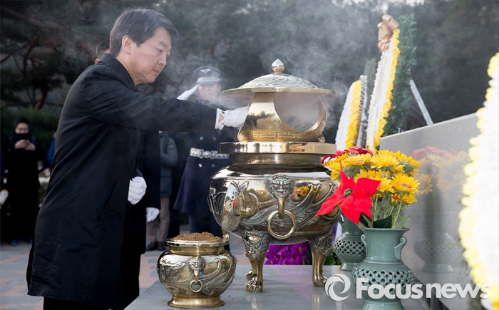 (서울=포커스뉴스) '국민의당' 창당을 추진하는 안철수 의원이 11일 오전 서울 동작구 국립서울현충원 故 김대중 전 대통령 묘역을 방문해 참배를 하고 있다.